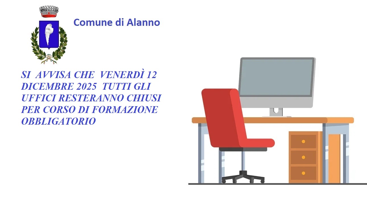 Si comunica che il giorno Venerdì 12 Dicembre 2025 gli Uffici Comunali
